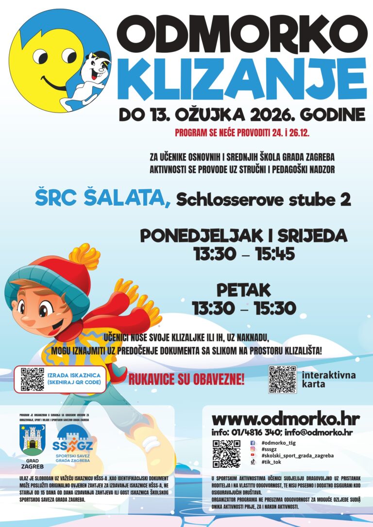 Školski sportski savez Grada Zagreba od ponedjeljka, 12. siječnja 2026. godine nastavlja sa programom slobodnog klizanja i …