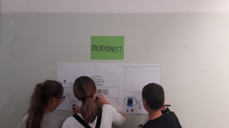 U četvrtak, 11. listopada 2018., u suradnji s SŠ Ruđera Boškovića, obilježili smo Svjetski dan vida, a vezano za projekt Očne gimnastike. Sudjelovalo je 28 učenika naše škole, 1. – 8. razred, bili su vrlo aktivni u izradi stripa za različita područja vida. Odradili vježbe očne gimnastike. Učili su promatrajući praktični rad učenika optičarskog usmjerenja o pomagalima za korekciju vida. Družili se s učenicima srednjoškolcima.