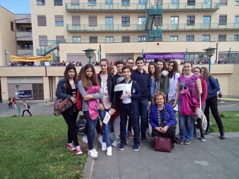 U petak, 13.4. učenici naše škole sa svojim profesorima bili su u posjetu Prirodoslovno-matematičkom fakultetu (PMF-u). Išli su učenici sedmih i osmih razreda s profesorom fizike Pavić i profesoricom kemije Kolar. Najprije su išli na fiziku gdje su pogledali različite pokuse iz fizike, sudjelovali su u istraživanju po kakvoj otopini mogu hodati, naučili nešto o magnetima. Na kemiji su aktivno sudjelovali u radionici Računalna kemija, obišli i analizrali različite pokuse koje su izvodili studenti. Slušali su predavanje profesora Stilinovića “Kemija sprijeda i straga”, o reverzibilnim kemijskim reakcijama. Predavanje je popraćeno nizom efektnih i zanimljivih eksperimenata.