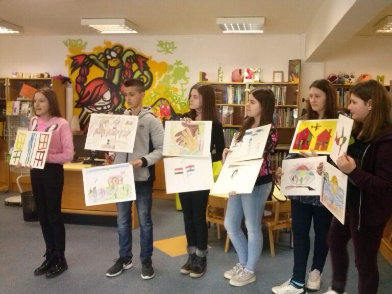 Dana 26.03.2018. u 11:30 posjetili smo knjižnicu S.S. Kranjčević kako bi nam marljivi volonteri održali predavanje o izbjeglicama, migrantima i azilantima. Nakon ugodne dobrodošlice objasnili su nam što zapravo znače riječi kao izbjeglica, migrant i azilant. Završetkom te teme izašli smo van i dobili listiće, svatko svoju ulogu koju nitko nije smio vidjeti. Uloge su bile na primjer: djevojka iz Afganistana u kampu za izbjeglice u Grčkoj bez pratnje, menadžer iz Agrokora. Dok smo svi stajali u liniji gospođa je čitala izjave kao što su: mislim da imama pravo glasa u svojoj državi, siguran sam u svojoj zemlji. Svatko tko je mislio da je ta izjava točna za njega se pomaknuo jedan korak naprijed. Nakon pročitanih izjava svi smo pročitali svoje uloge. Dok smo čitali primijetili smo da nas koji smo na kraju ne mogu čuti ovi skroz naprijed. Zaključili smo da tako ni djeca i drugi ljudi koji su morali pobjeći iz svoje zemlje nemaju dovoljno prava i ne mogu se usporediti s na primjer menadžerom iz Agrokora. Zatim smo se podijelili u tri grupe. Svaka grupa je dobila jednu skupinu crteža. Dobili smo pitanja i prokomentirali pred svima svoje slike, kako ih mi vidimo. Crteže su nacrtala djeca koja su morala pobjeći iz svojih država. Crtala su crteže na temu putovanja, prošlosti, budućnosti. Bilo je vrlo tužnih i strašnih slika, a sve su to morala nacrtati djeca koja su nažalost morala sve to pretrpjeti. Poslije smo sve te slike poslagali u jednu izložbu u knjižnici. Nakon toga su nas počastili sokom i napisali smo na jedan papirić što nam se danas svidjelo, a što nije i to smo zalijepili na jedan ormar. Svima nam je bilo žao što smo vidjeli sve to, ali nam je bilo još gore vidjeti da su to sve prošla nevina djeca. Magdalena Zrnić […]